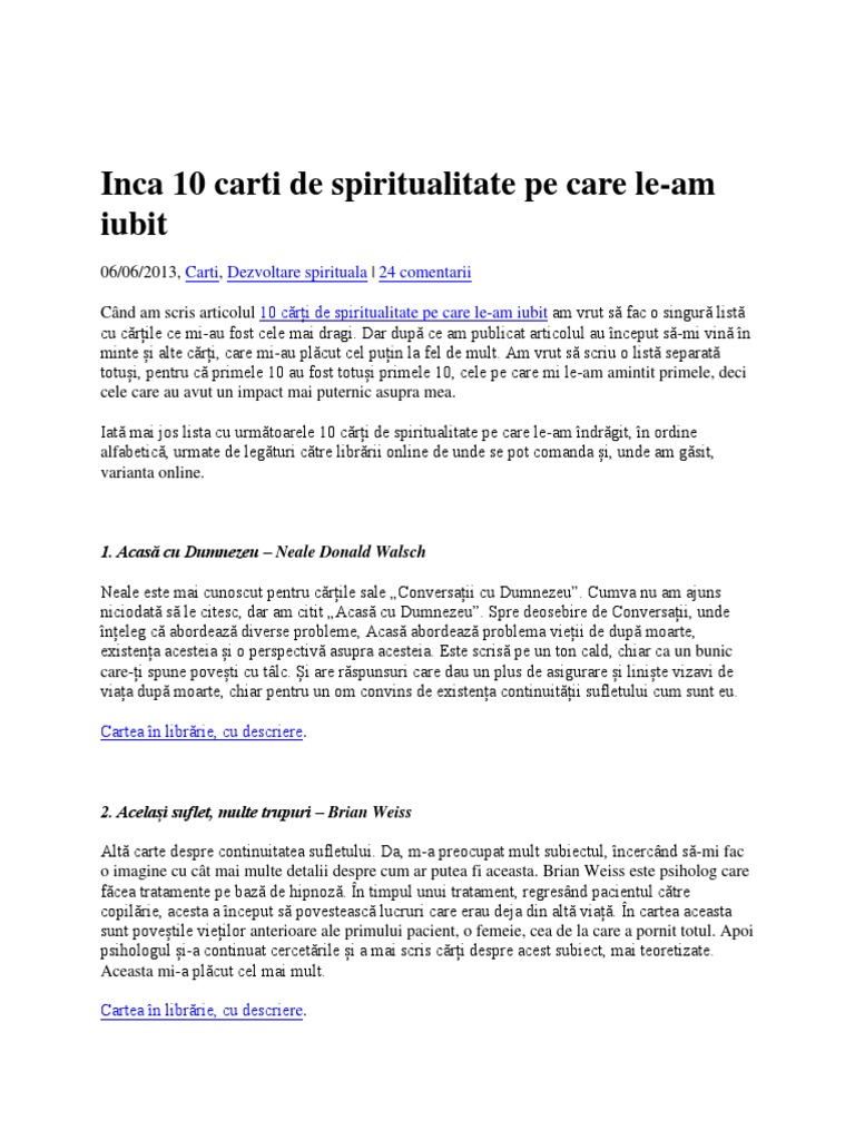 Inca 10 Carti De Spiritualitate Pe Care Le Docx