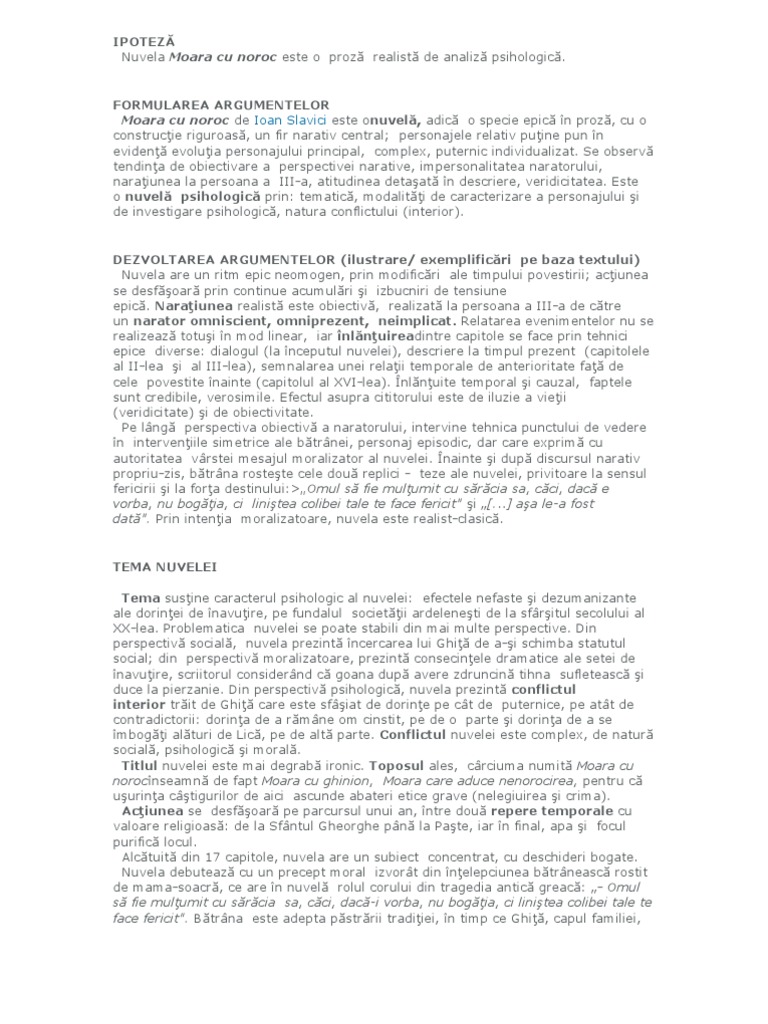 Argumentare Moara Cu Noroc Nuvela Psihologica
