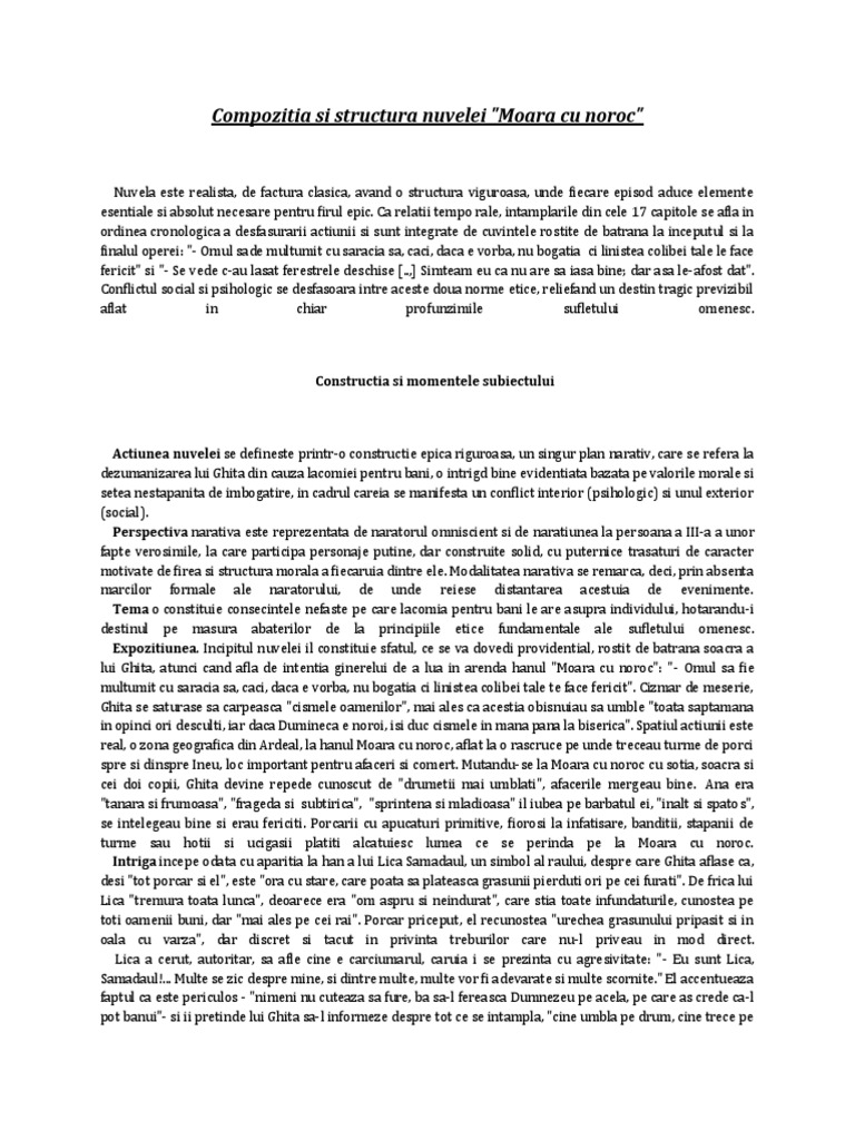 Compozitia Si Structura Nuvelei Moara Cu Noroc Docx