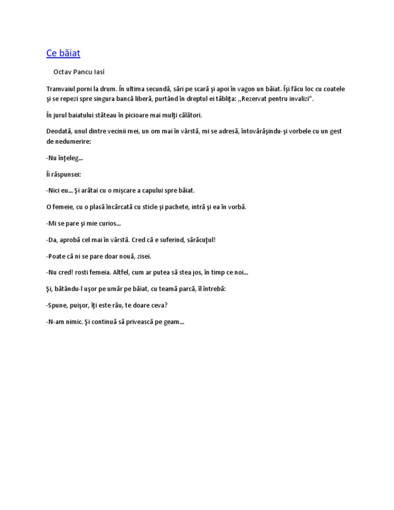Ce Baiat După Octavian Pancu Iasi Povestire Brainly Ro