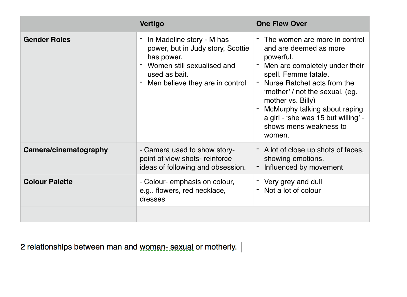 A Level Film Studies Vertigo Vs One Flew Over The Cuckoos Nest