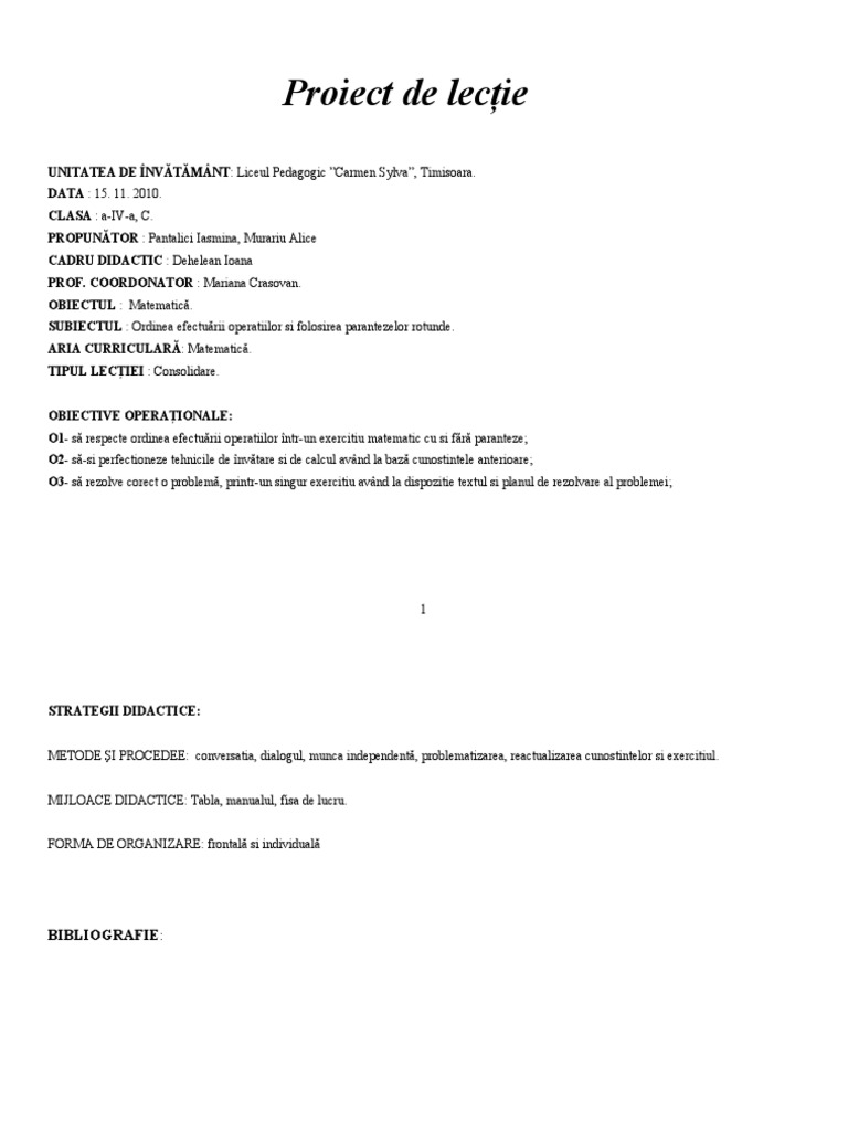 Proiect A Ordinea Efectuarii Operatiilor