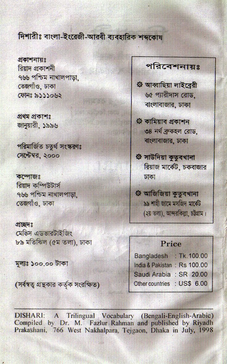 Dictionary 01 16 Introduction Three Language Wordbook Dishary Dishari Bangla English Arabic Word Book