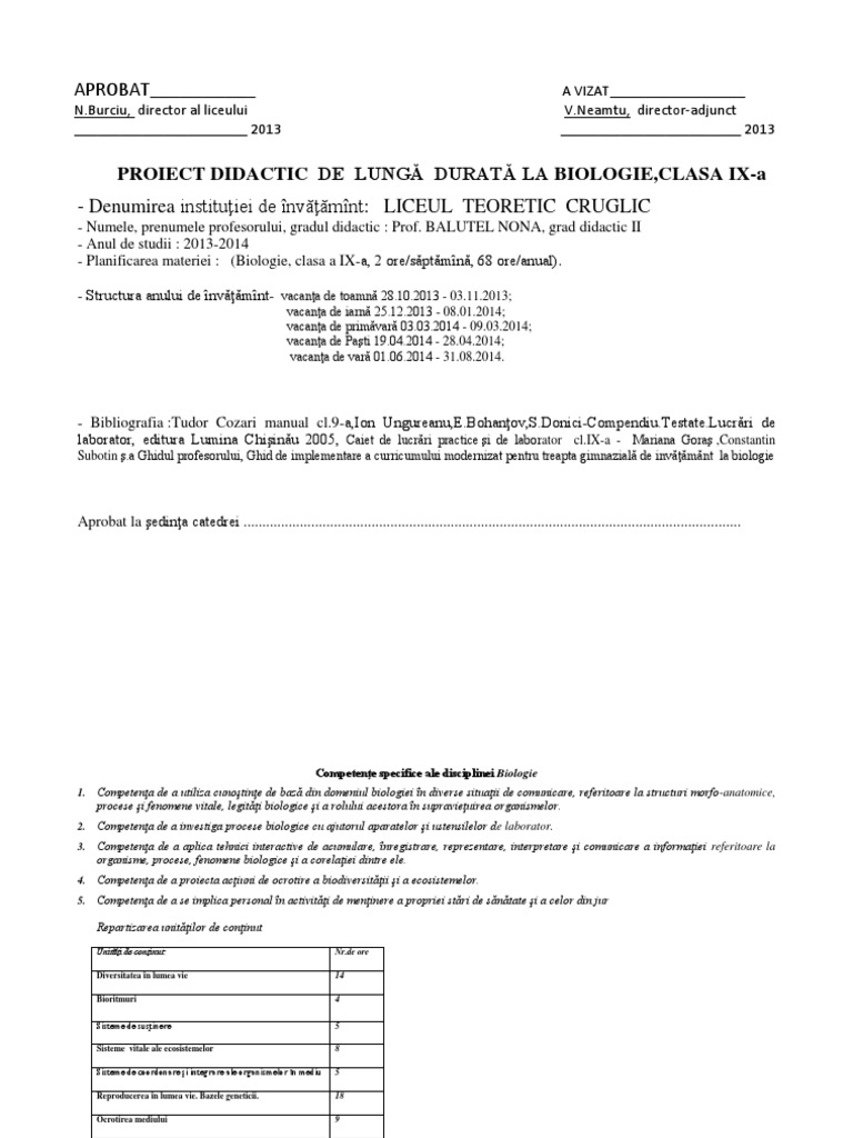 Planificare Biologie Pentru Clasa A V A Planificari Clasa V A Planificări