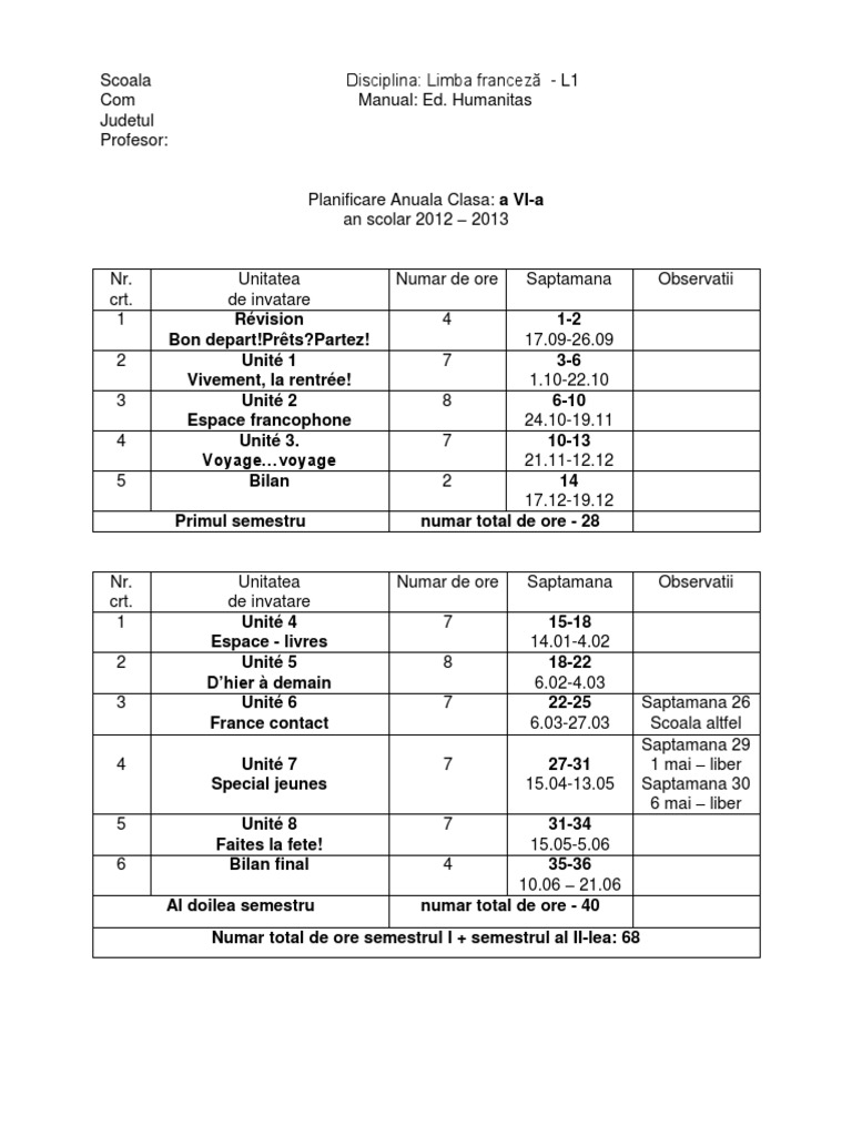 Planificare Calendaristica Clasa A Vi A 2017 2018 Doc