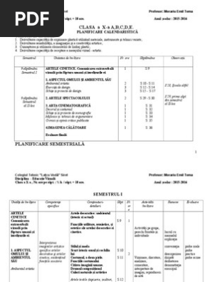 Planificare Educație Plastică Pentru Clasa A V A Planificari Clasa V A Planificări