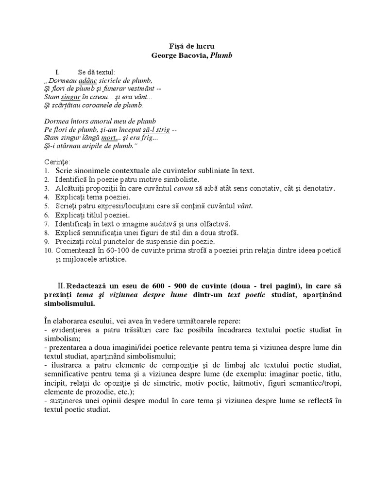 Eseuri Bac Lb Romană Plumb De George Bacovia Wattpad