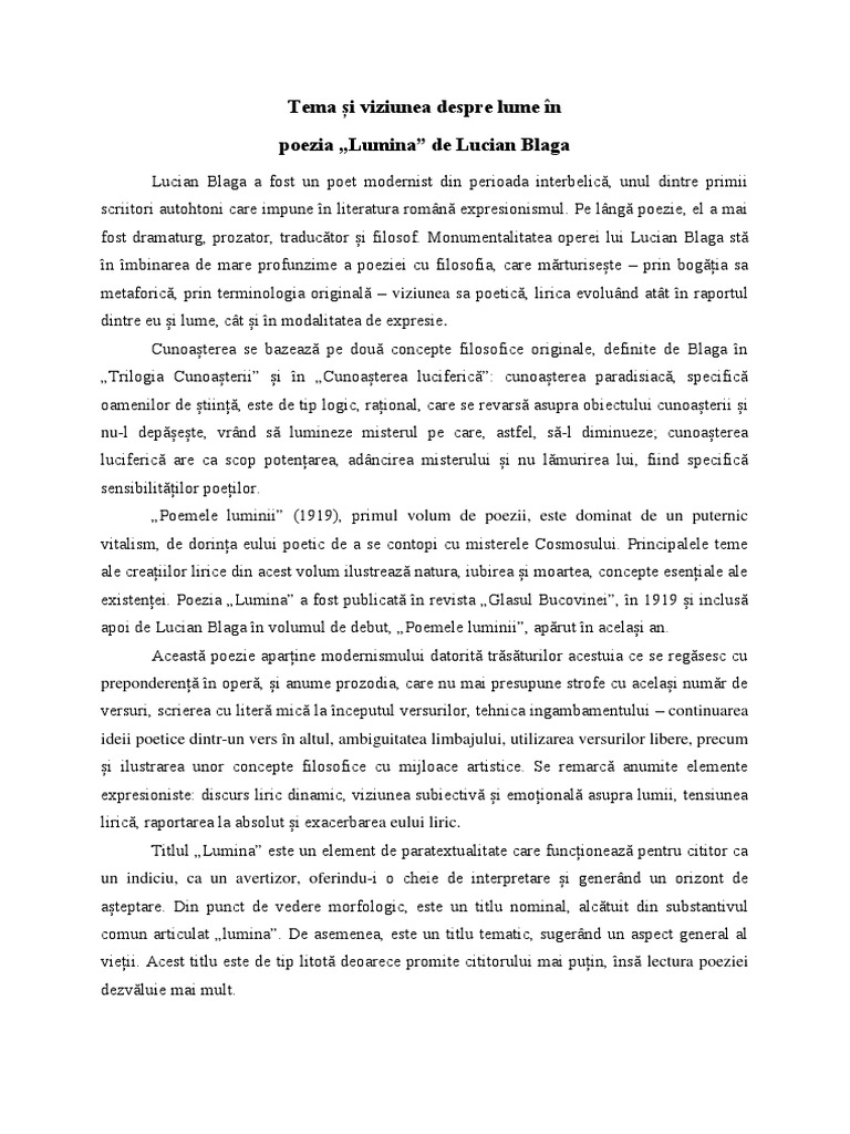 Lumina De Lucian Blaga Liceunet Ro