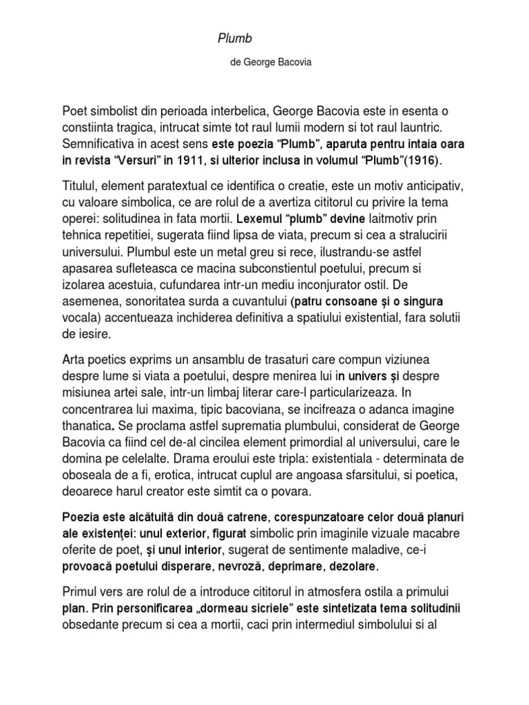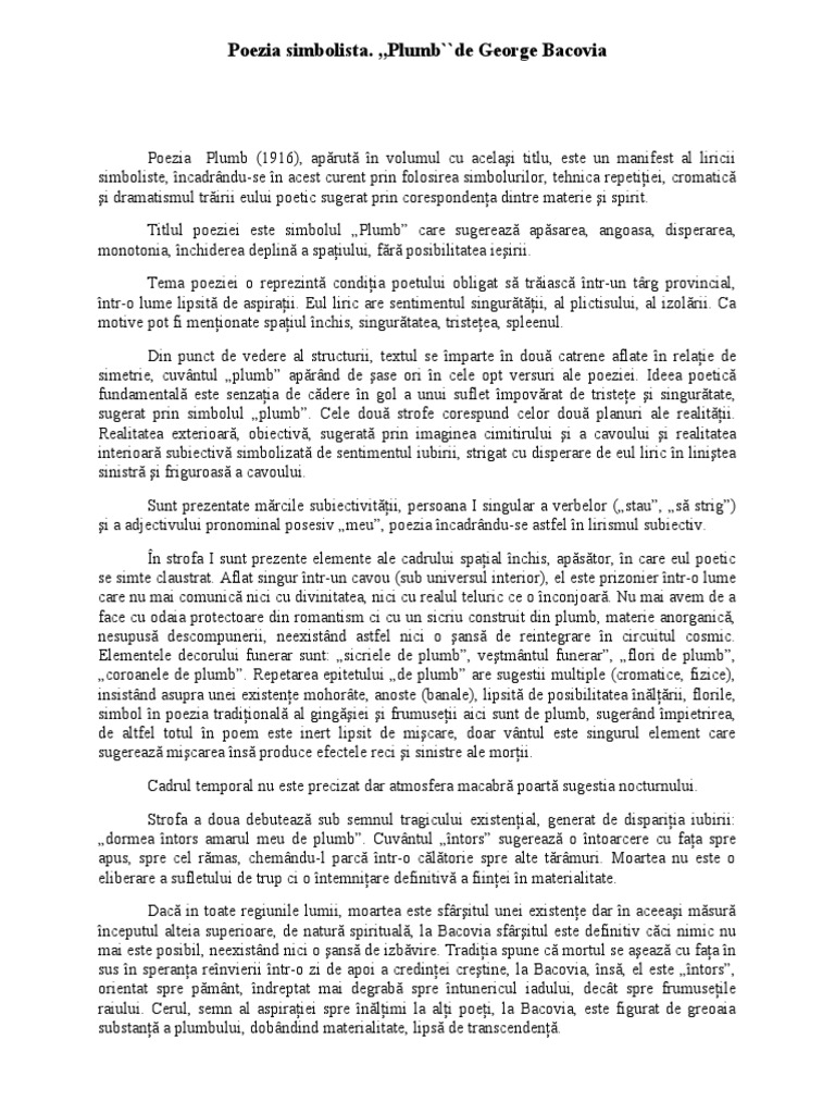 Doc Plumb De George Bacovia Simbolism Comentariu Bac Anca Nicolae Academia Edu