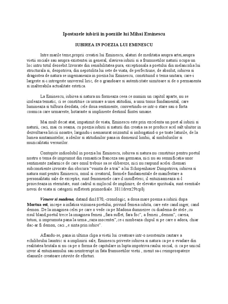 Ipostazele Iubirii In Poeziile Lui Mihai Eminescu