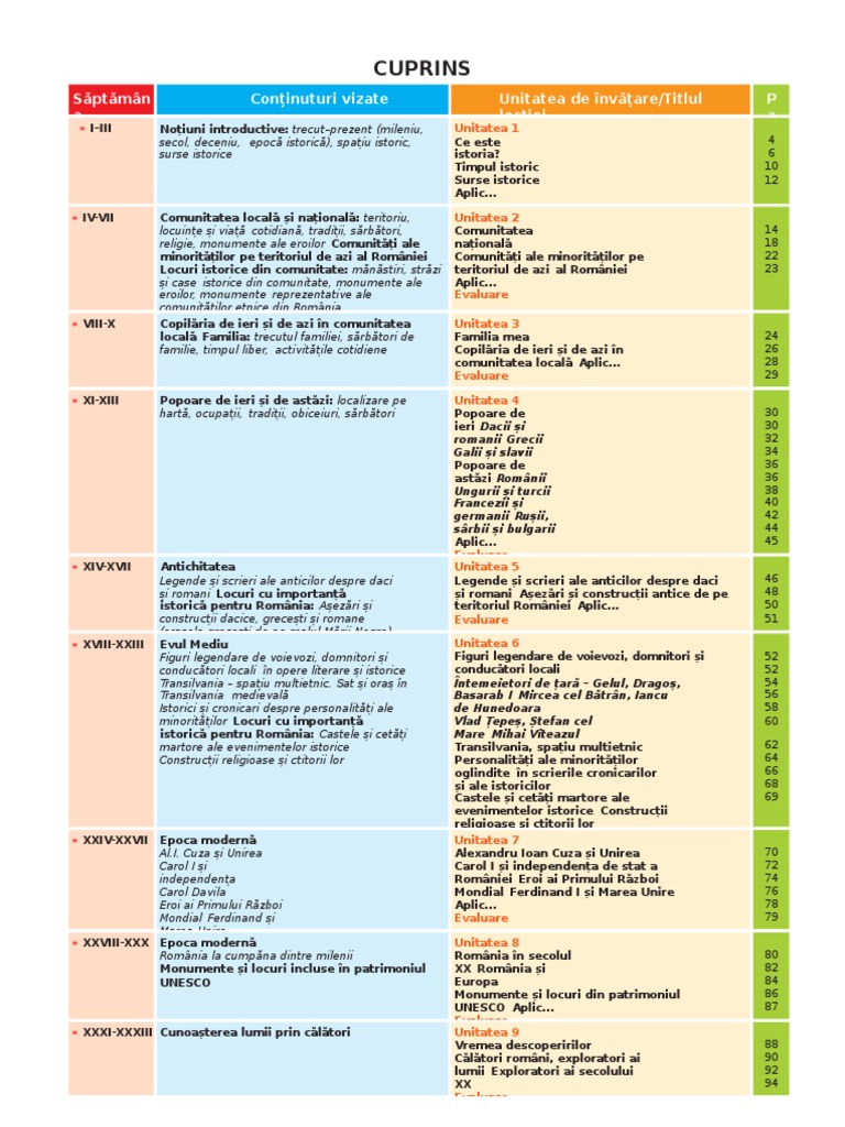 Programa Scolara Istorie Clasa 4
