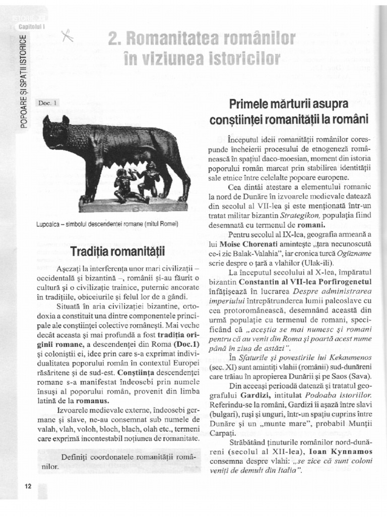A Popoare Si Spaţii Istorice 1 Romanitatea Romanilor In Viziunea Istoricilor