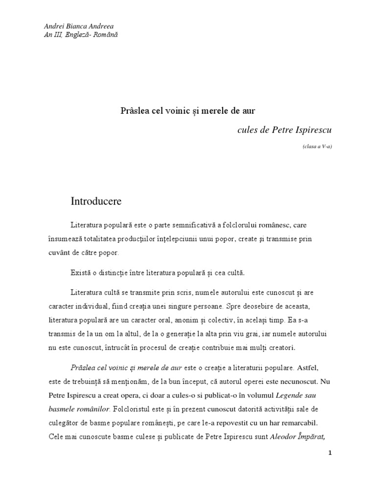 Prastlea Cel Voinic Si Merele De Aur Ideile Principale Scurte Sa Creada Profa Ca Eu Leam Facut Brainly Ro