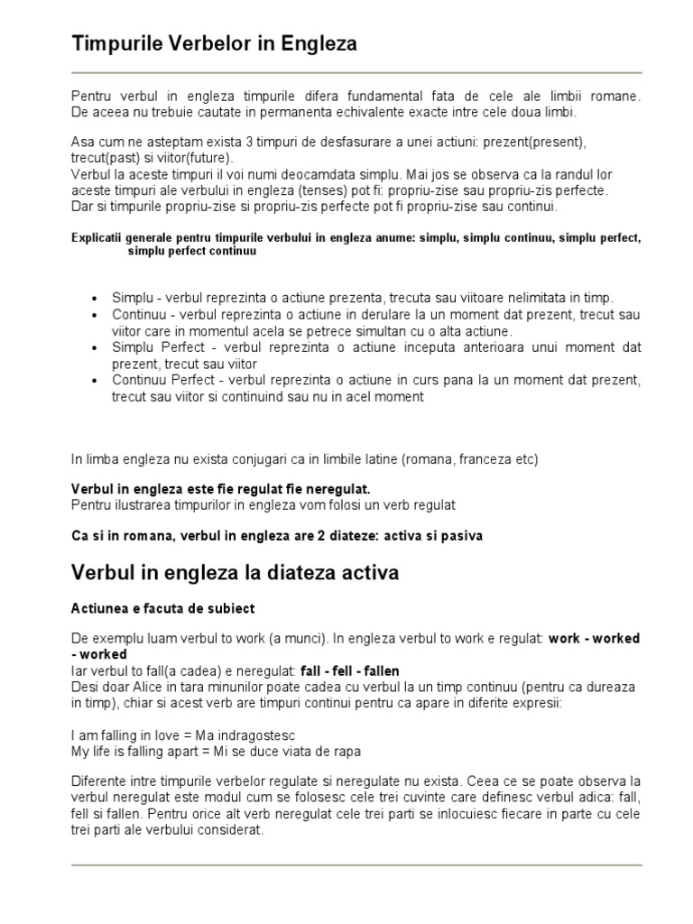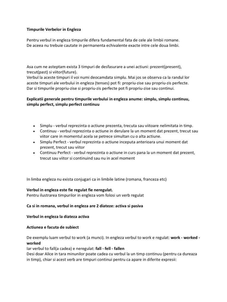 Fituica Timpurile Verbelor Limbii Engleze Engleza 44931 English Grammar Grammar Language