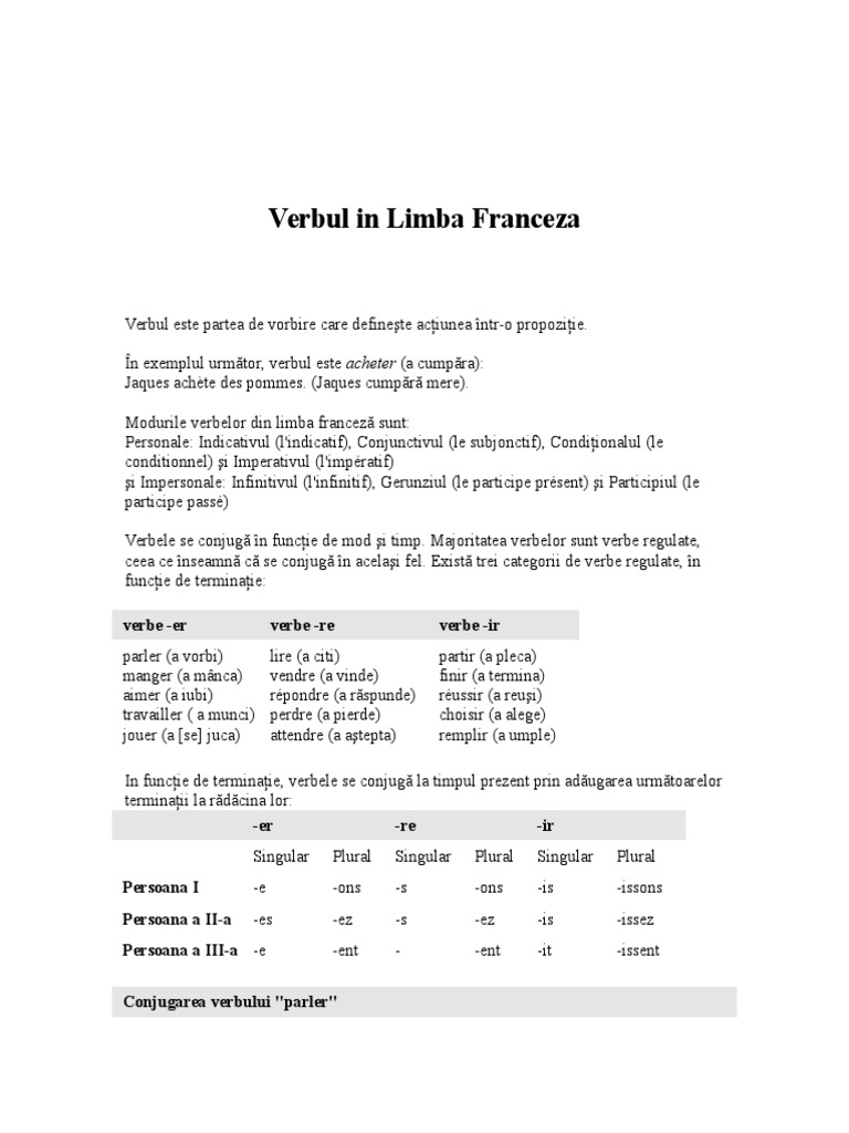 Verbul In Franceza