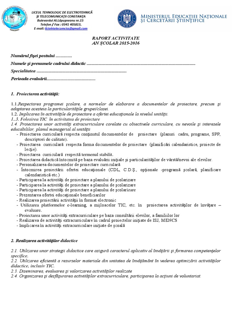 Doc Raport De Activitate Model Tip Pop Cristina Academia Edu