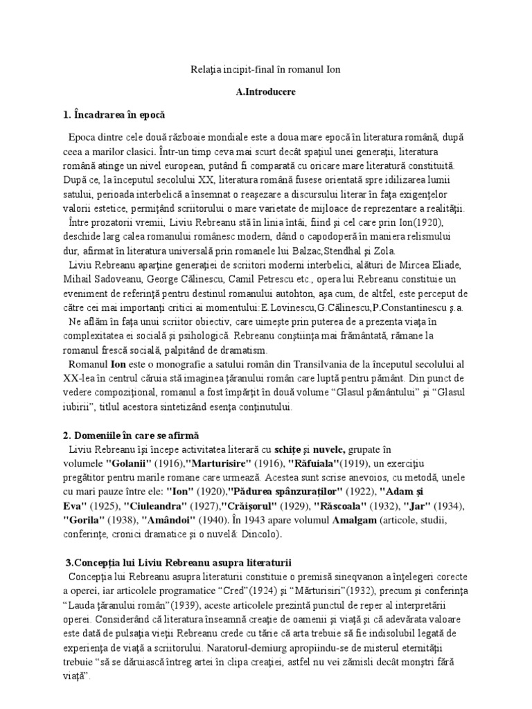 Relatia Dintre Incipit Si Final In Ion De Liviu Rebreanu
