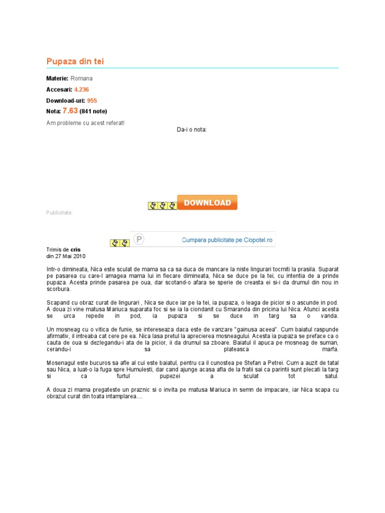 Pupaza Din Tei Rezumat