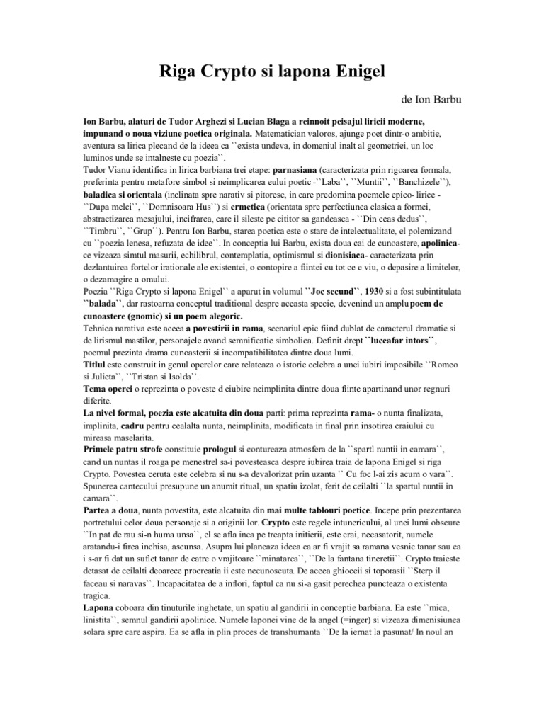 Riga Crypto Si Lapona Enigel Comentariu Ion Barbu