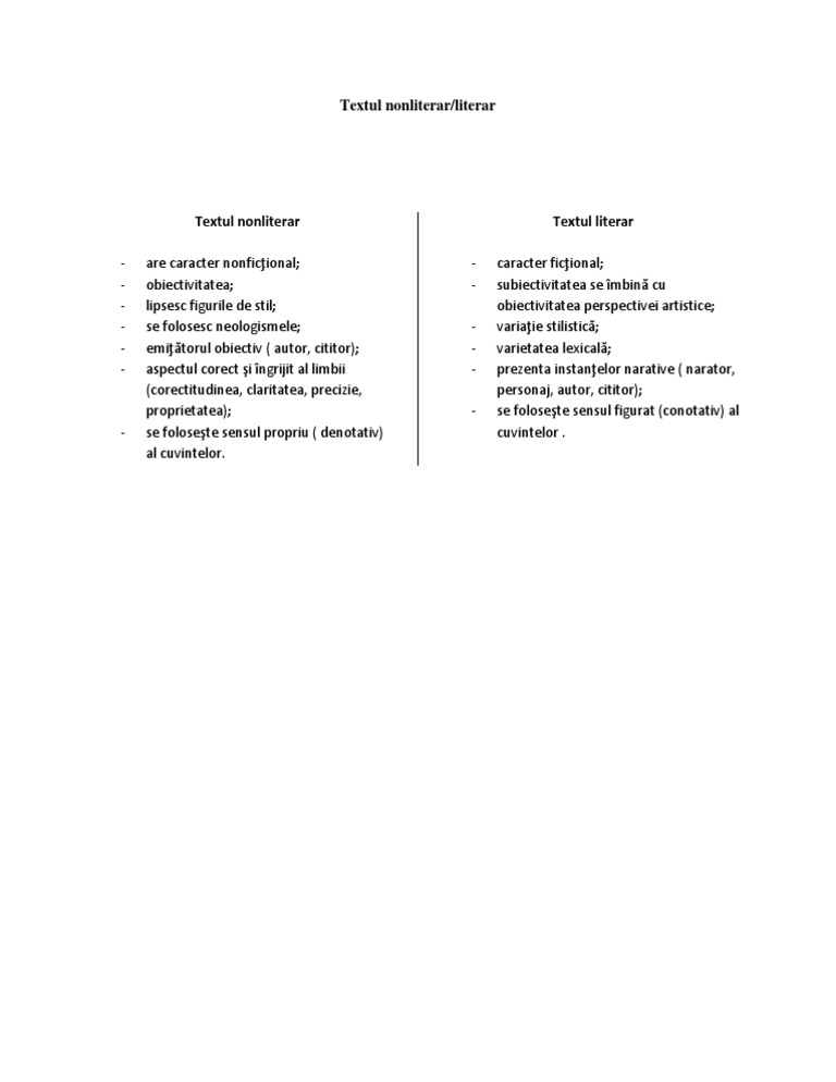 Textul Nonliterar Literar