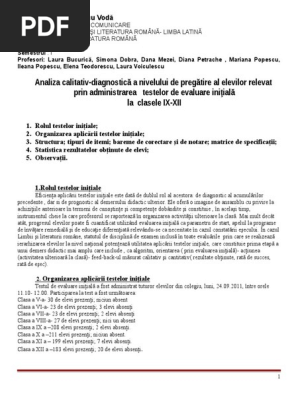 Analiza Evaluare Initiala Limba Si Literatura Romana
