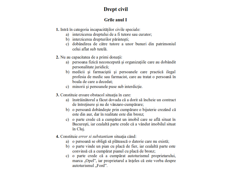 Teste Grila Rezolvate Drept Civil Anul I Student La Drept