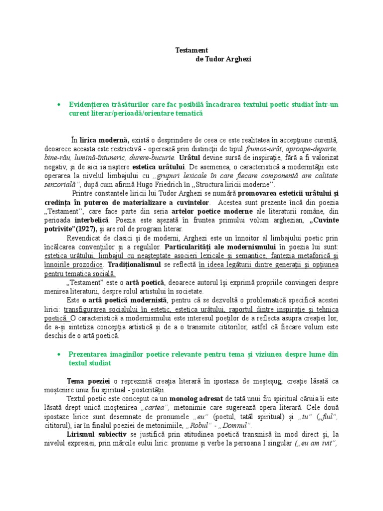Text Poetic Arghezi Tema Si Viziunea Despre Lume Intr Un Text Poetic Studiat Din Opera Lui Tudor Arghezi Testament