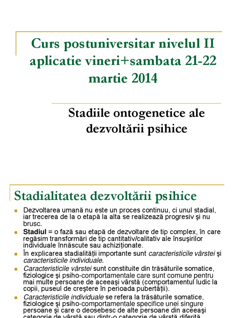 21 22 Martie Aplicatii Curs Stadialitatea Dezvoltarii Psihice