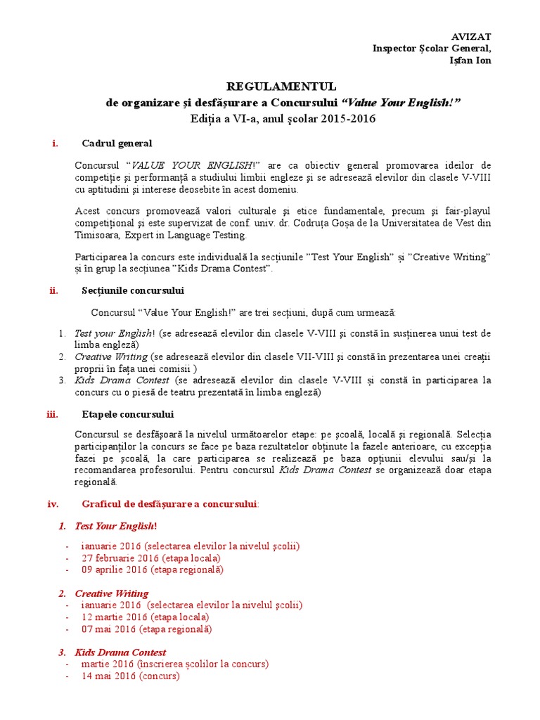 2016 Regulament Value Your English 1