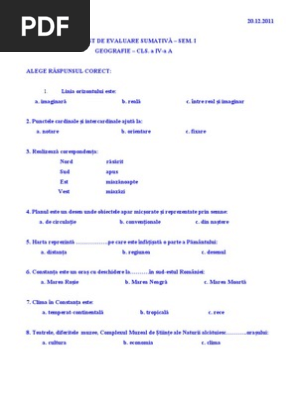 Test Initial Geografie Pentru Clasa A Ix A Raducanahai 15 09 2011