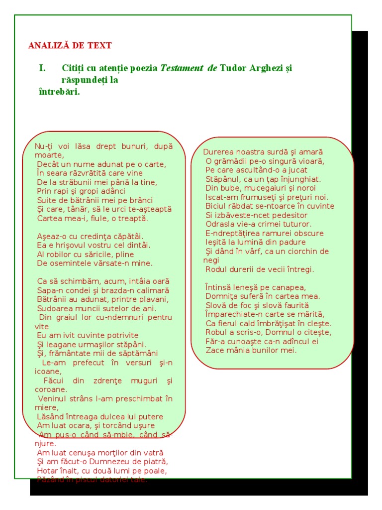 Testament Tudor Arghezi Bac Comentariu