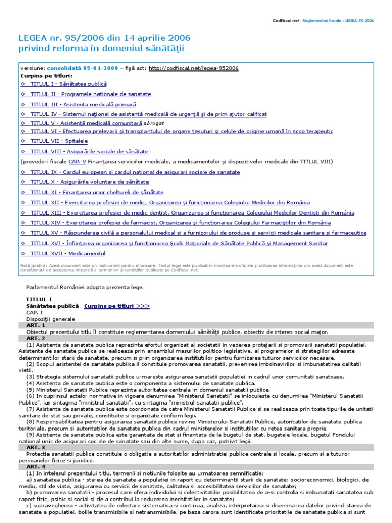 Legea 95 2006 Reforma Domeniul Sanatatii Vconsolidata 05 01 2009
