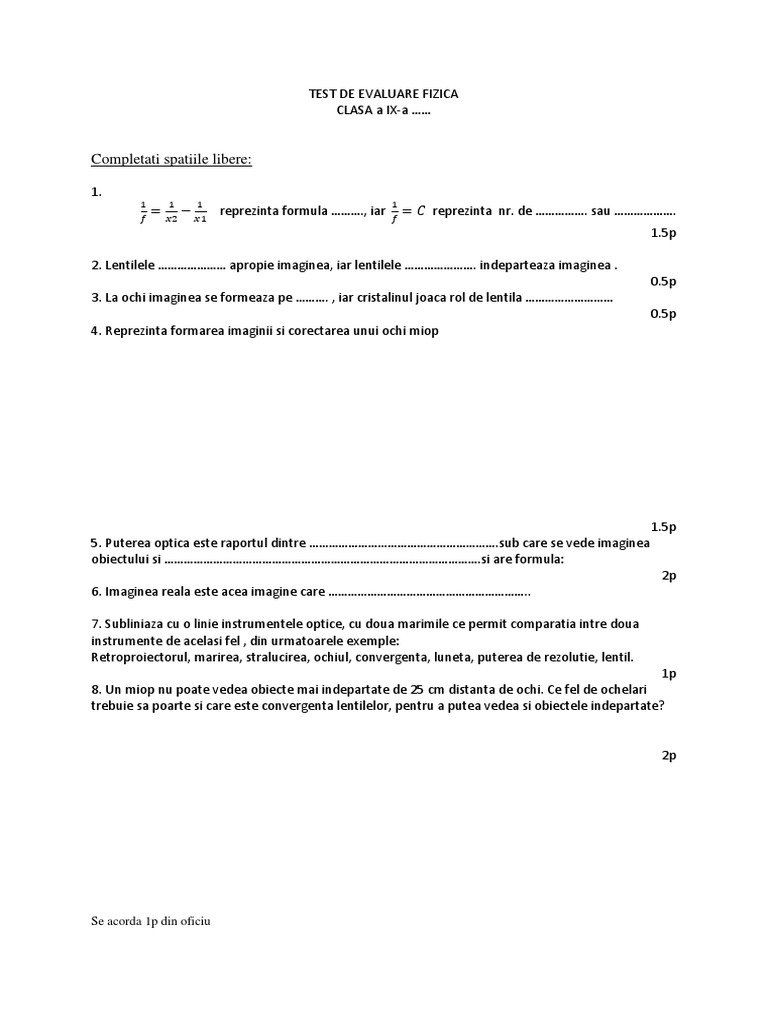 Test Initial Clasa A Ix A Fizica Gabriel Nicolae Teodorescu 23 09 2011