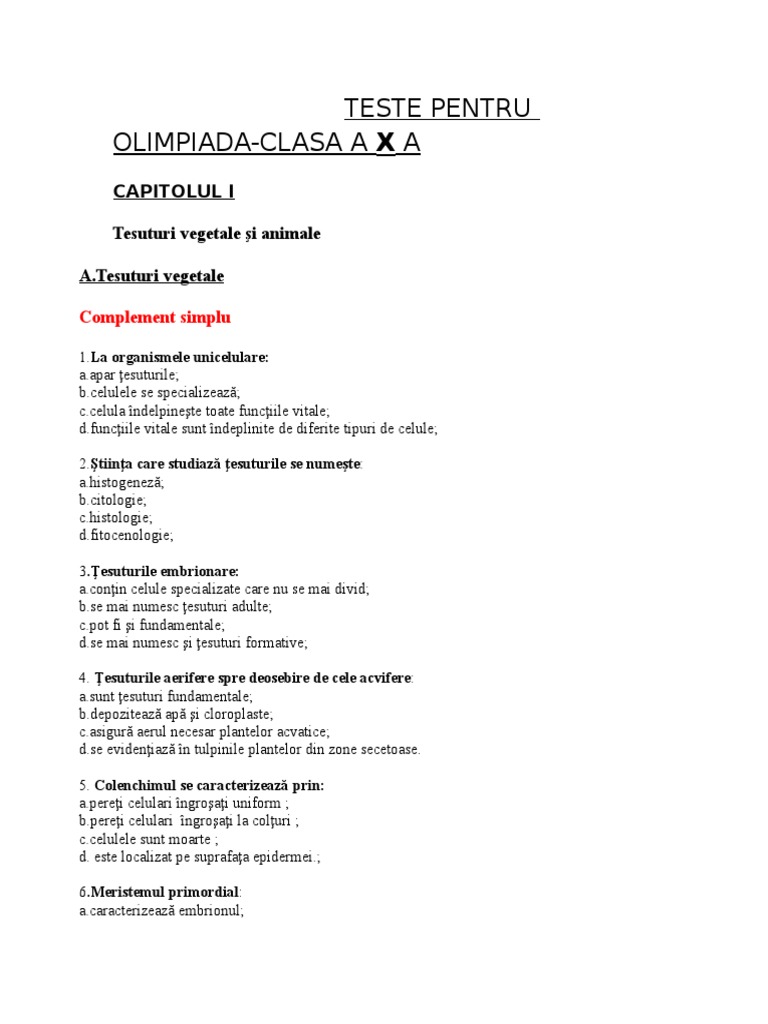 Test de evaluare continua propus pt. Test țesuturile vegetale și animale clasa a x a 18 octombrie 2015 19 33. Prima pagină învăţământ liceal biologie teste test țesuturile vegetale și animale. 1 a spus mulţumesc.